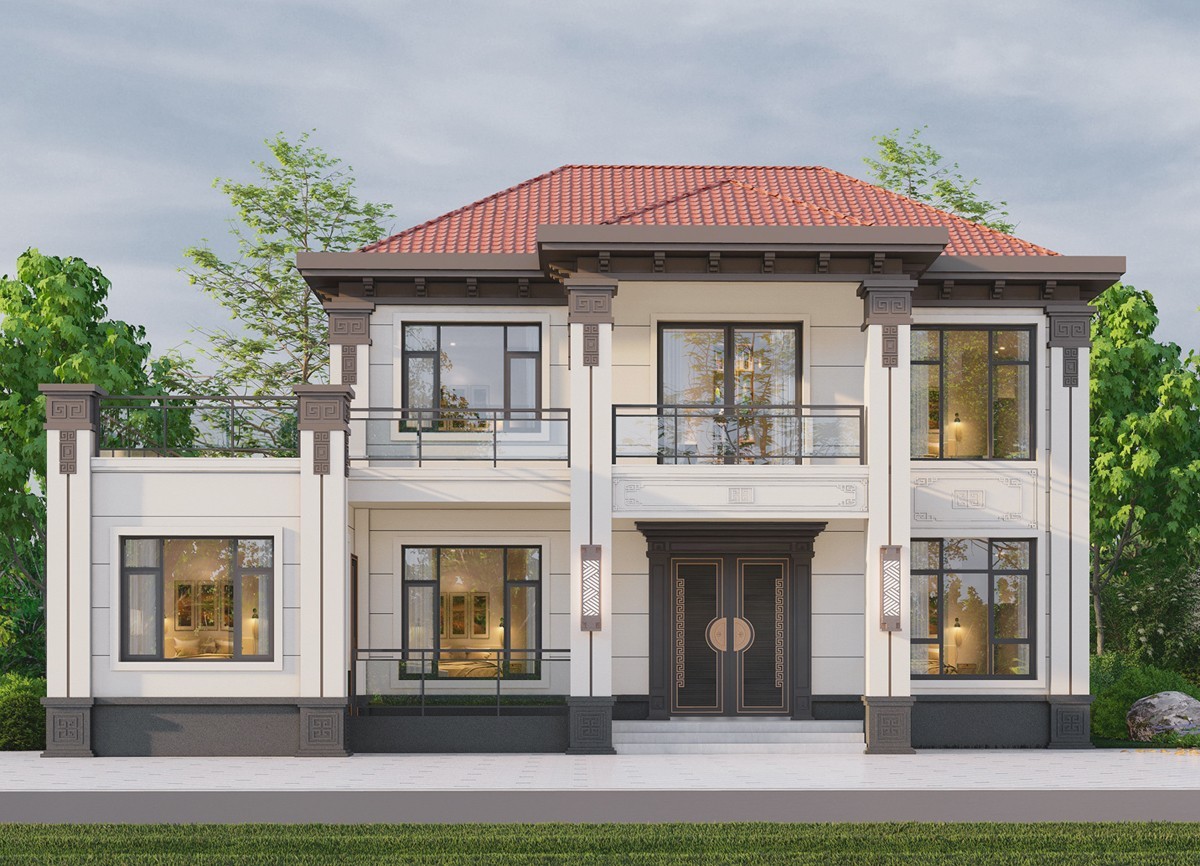 琼海005 两层新中式(11.36x11.76米)-【易设计】